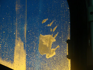 Em dias de chuva a janela fica com a marca do toque de uma mão que tentou fechar a janela (percebe o movimento dos dedos).